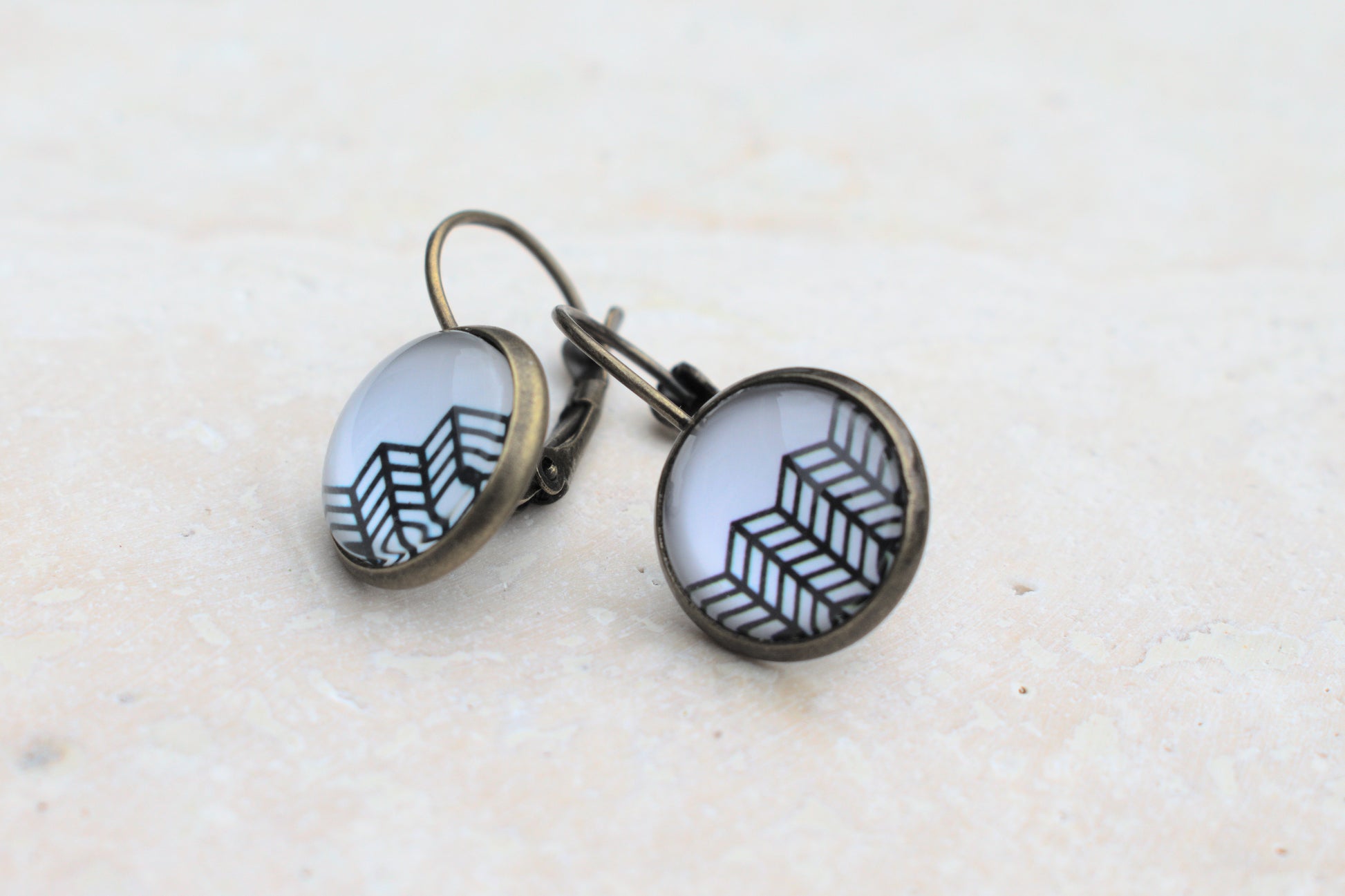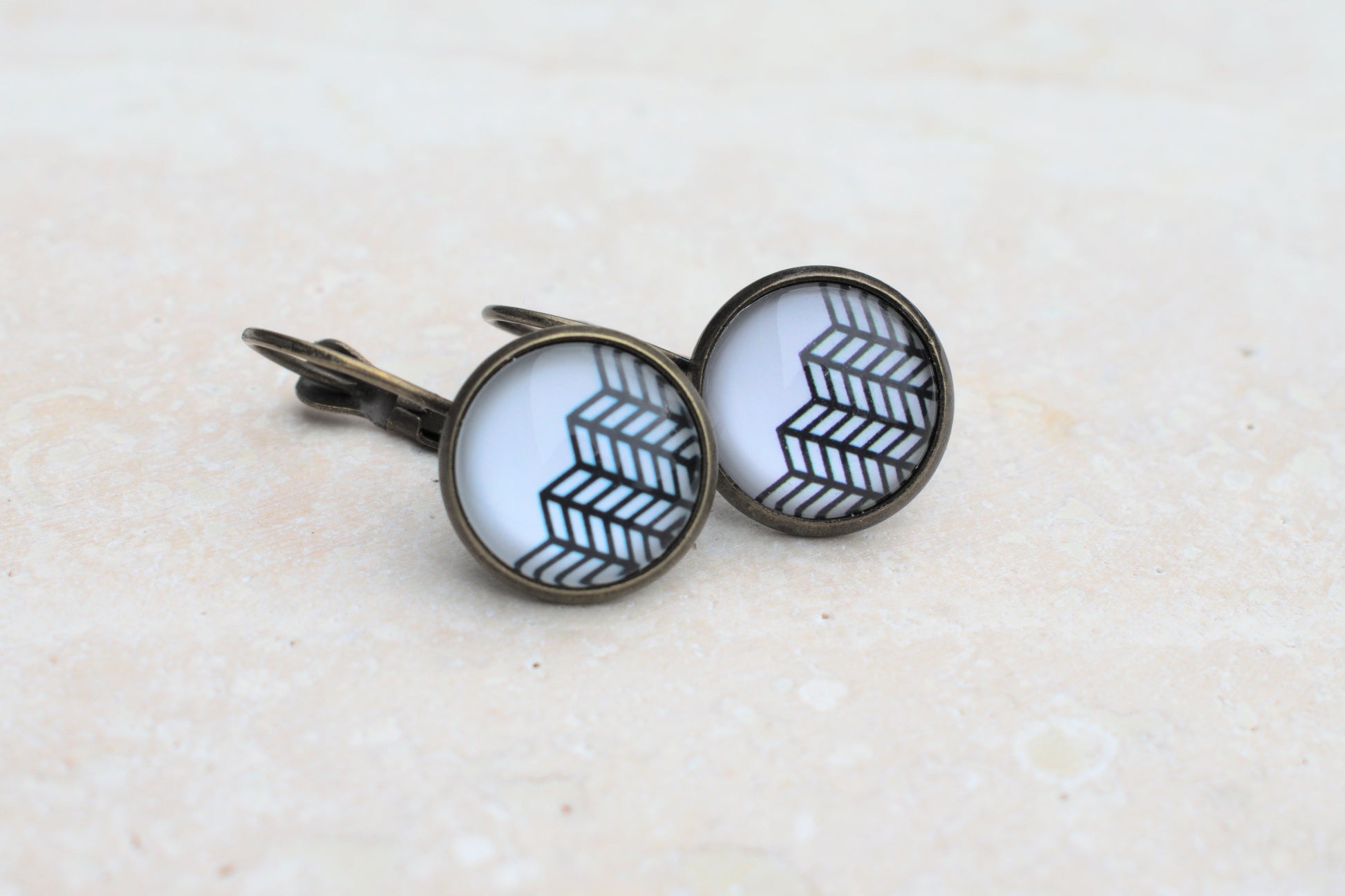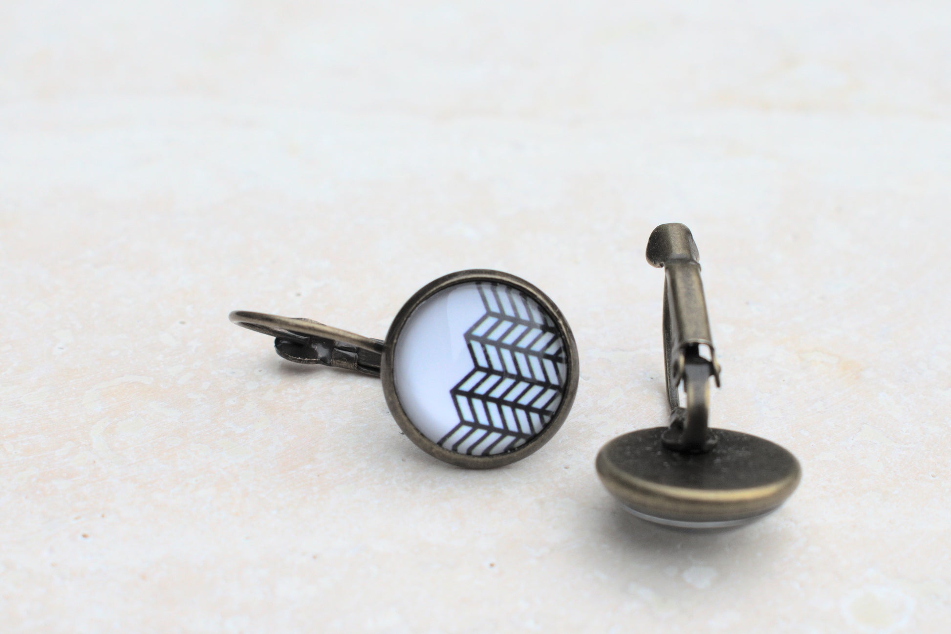 Diese bronzenen Ohrringe vereinen nostalgischen Charme mit moderner Schlichtheit. Im Mittelpunkt steht jeweils ein Cabochon, dessen glatte, gewölbte Oberfläche das darunterliegende Motiv stilvoll zur Geltung bringt. Unter dem klaren Glas-Cabochon verbirgt sich ein minimalistisches, geometrisches Bild, das dem Schmuckstück eine zeitgemäße und künstlerische Note verleiht – perfekt für alle, die klare Formen und dezentes Design schätzen.
