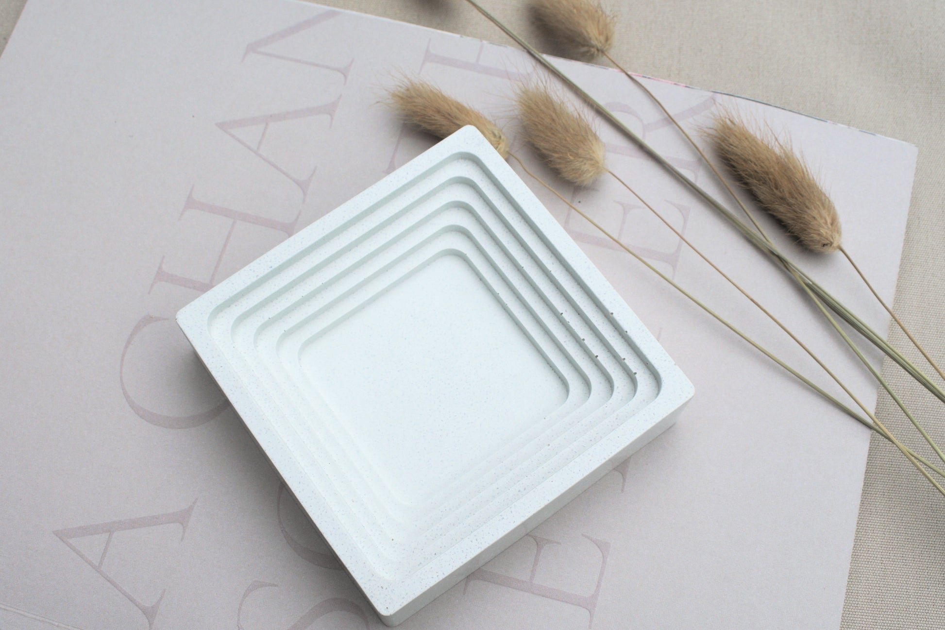 Weiße quadratische Dekoschale oder weiße Schmuckschale aus Beton