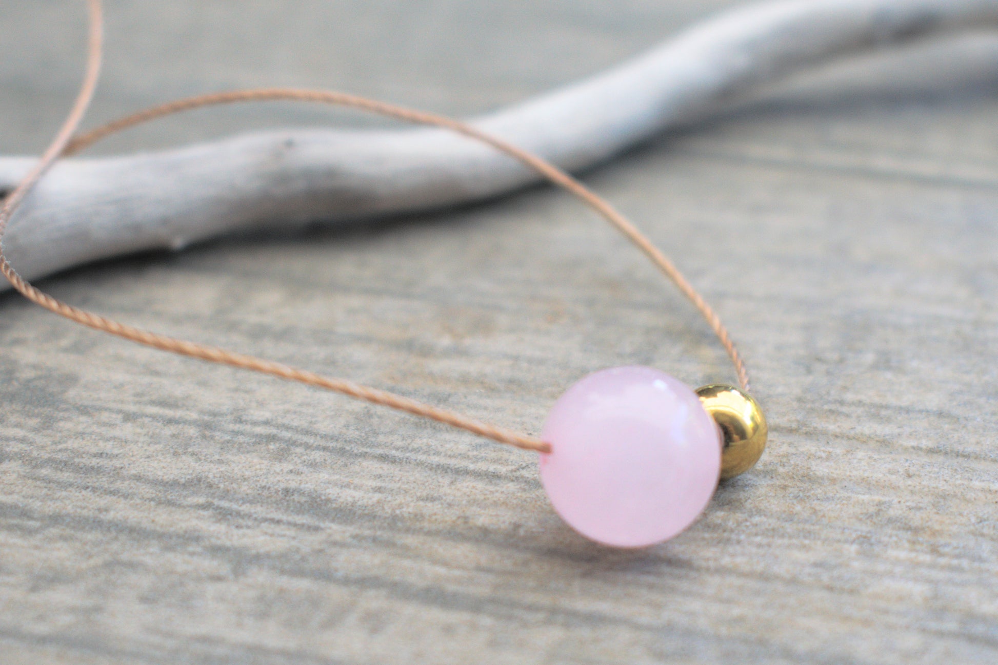 Material: Rosenquarz, goldene Perle aus Edelstahl, Nylon