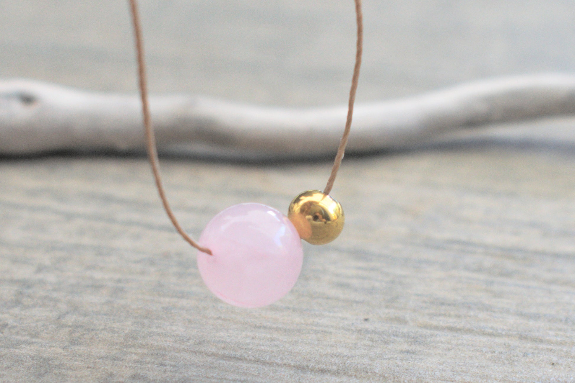 Diese zarte Kette aus braunem Nylon vereint schlichte Eleganz mit natürlichem Charme. Der Anhänger besteht aus einem edlen, rosafarbenen Rosenquarz, der für Liebe, Harmonie und innere Ruhe steht. Abgerundet wird das Design durch eine stilvolle goldene Edelstahlperle, die dem Schmuckstück einen modernen und hochwertigen Akzent verleiht.