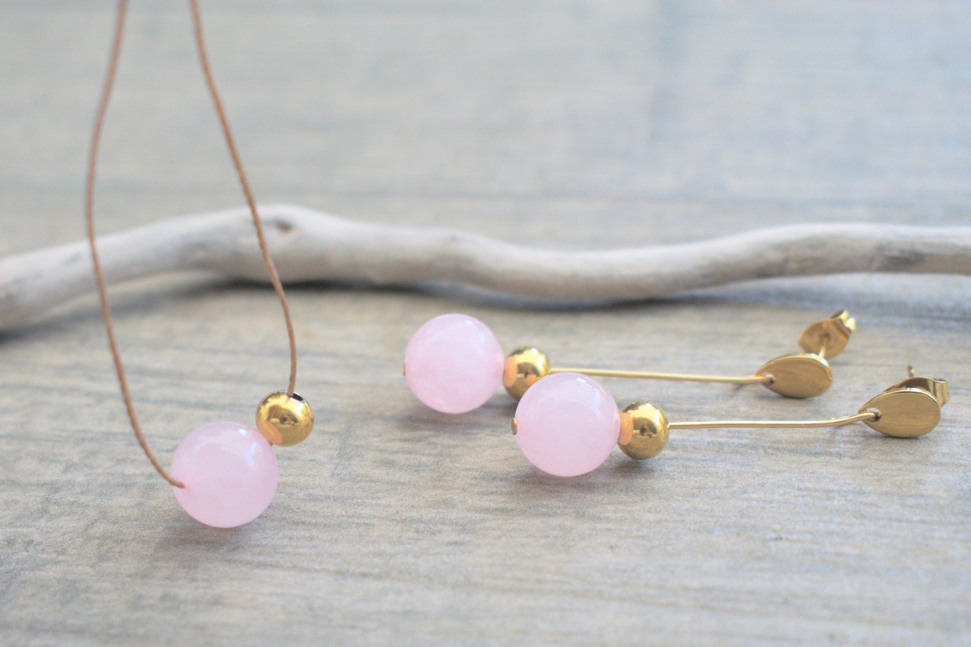 Durchmesser der Perlen: Rosenquarz 10 mm, Edelstahlperle: 6 mm